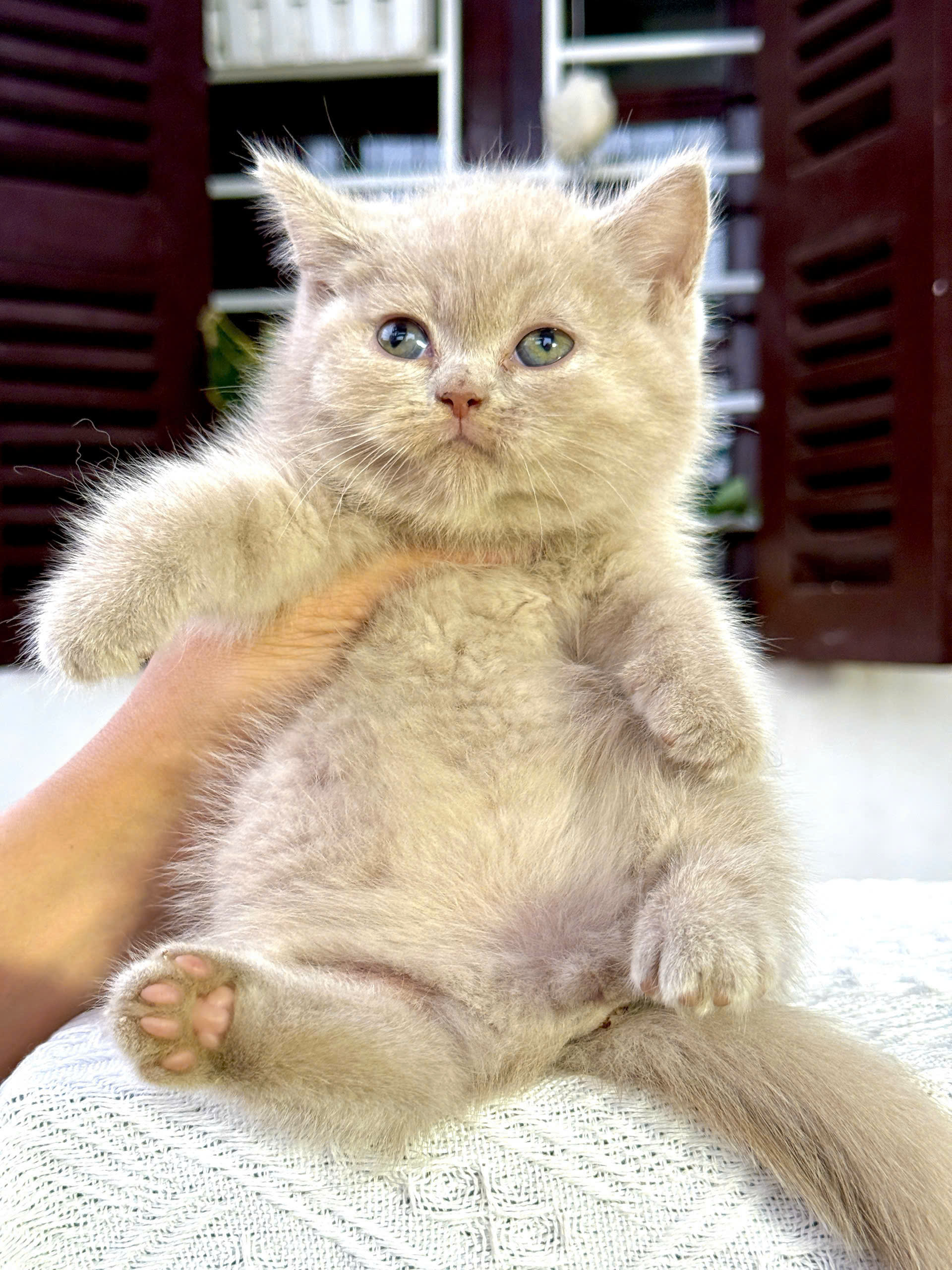 – Lông ngắn, dày. Màu lông phổ biến nhất là xanh xám, ngoài ra còn có màu trắng, vàng, kem, bạc,…